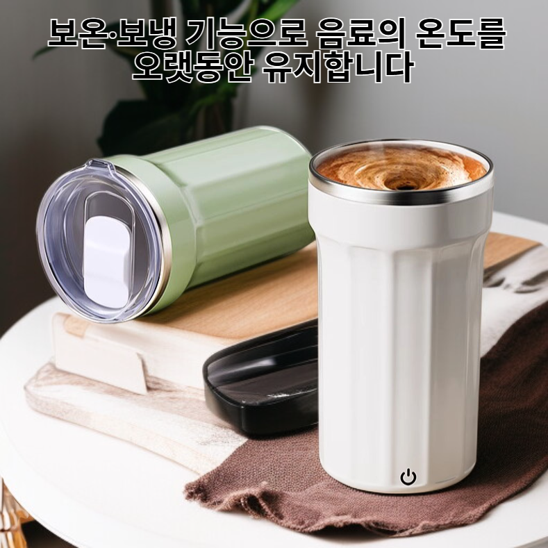 ● 고급스러운 디자인과 전동 교반 기능으로 커피의 맛과 향을 오랫동안 신선하게 유지해줍니다. ● 사무실 및 가정에서 모두 사용 가능하며, 보온·보냉 기능으로 음료의 온도를 오랫동안 유지합니다. ● 휴대가 간편한 무선 충전 방식과 넉넉한 용량으로 언제 어디서나 편리하게 사용할 수 있습니다. ● 안전한 재질과 미끄럼 방지 바닥 설계로 사용 중 흔들림 없이 안정적으로 음료를 즐길 수 있습니다. ● 세련된 외관과 실용성을 겸비해 선물용으로도 탁월한 선택입니다.